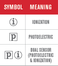 For maximum detection, install both types of smoke alarms on each level and in every bedroom of your home. First Alert offers a variety of ionization and photoelectric smoke alarms including battery operated, hardwired and combination smoke and carbon monoxide alarms. For both types of sensors in one alarm, install dual sensor smoke alarms that use both sensing technologies. To identify if you have an ionization, photoelectric or dual sensor smoke alarm, review the packaging or back of the alarm to find the smoke sensor symbol. You will see one of the below: